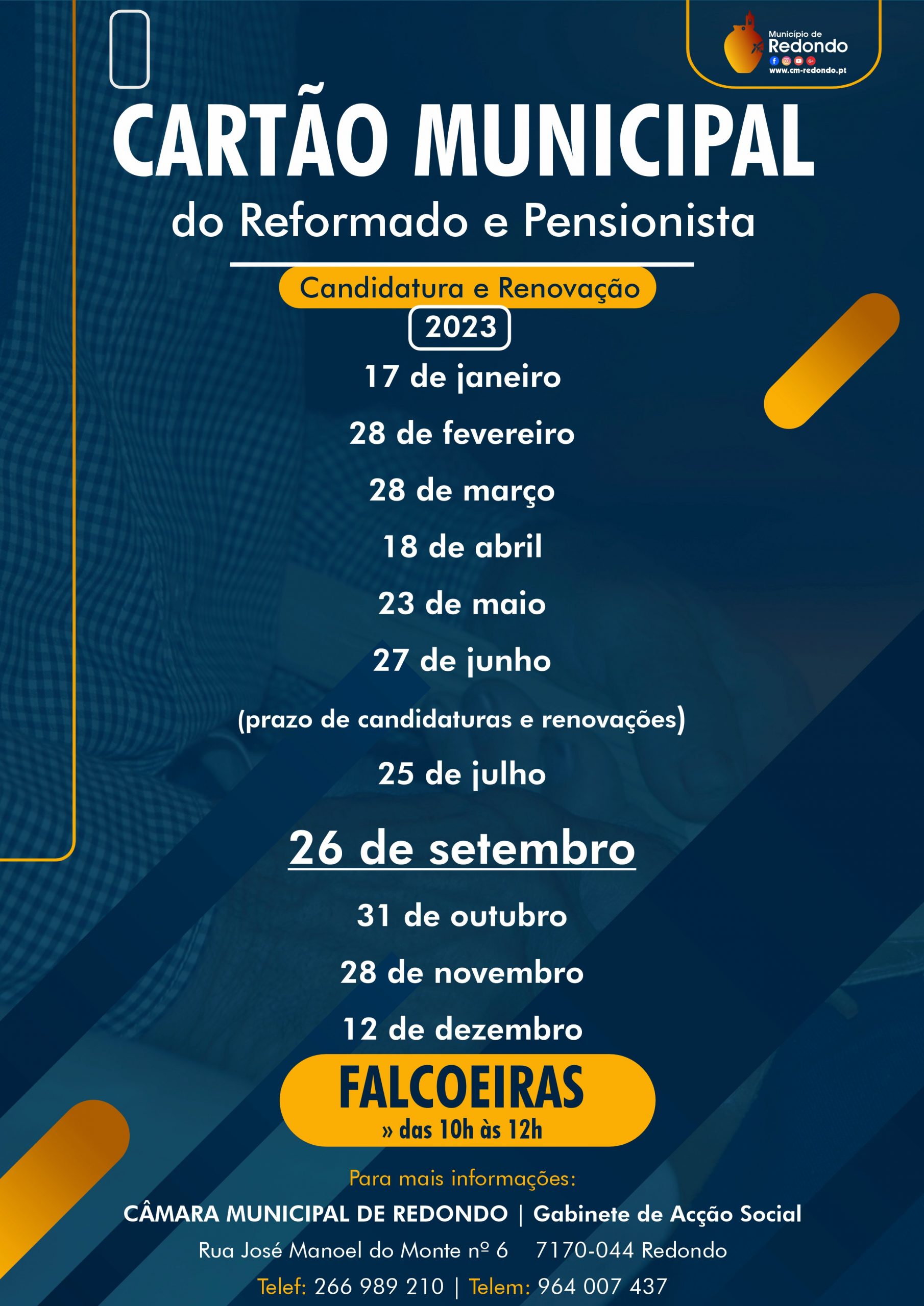 Candidaturas e Renovações do Cartão Municipal do Reformado e Pensionista – Falcoeiras