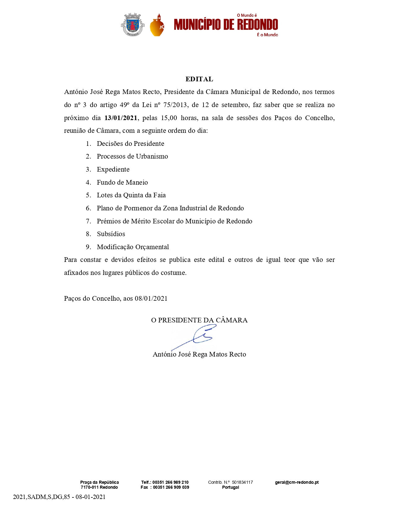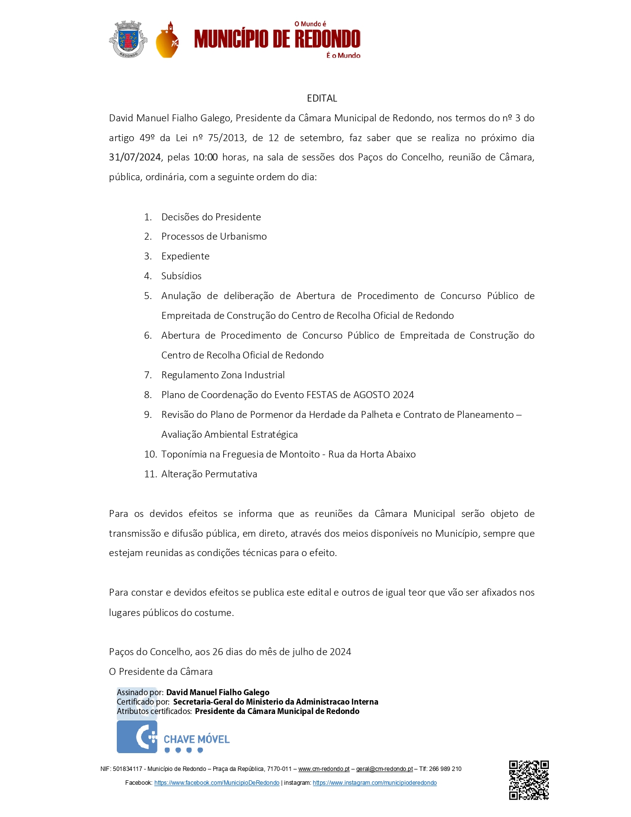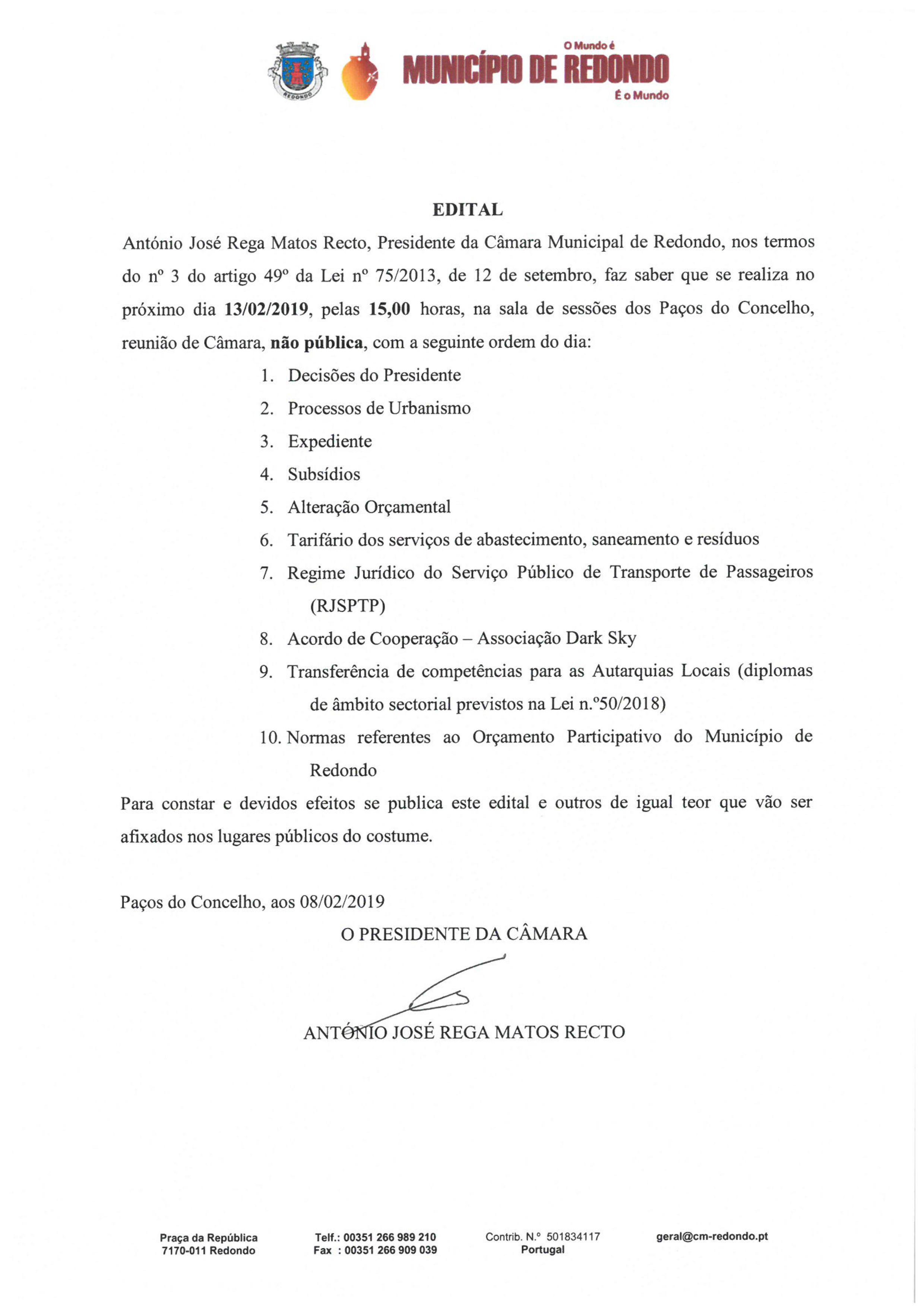 Consulte os Editais e Avisos da Câmara Municipal de Redondo.