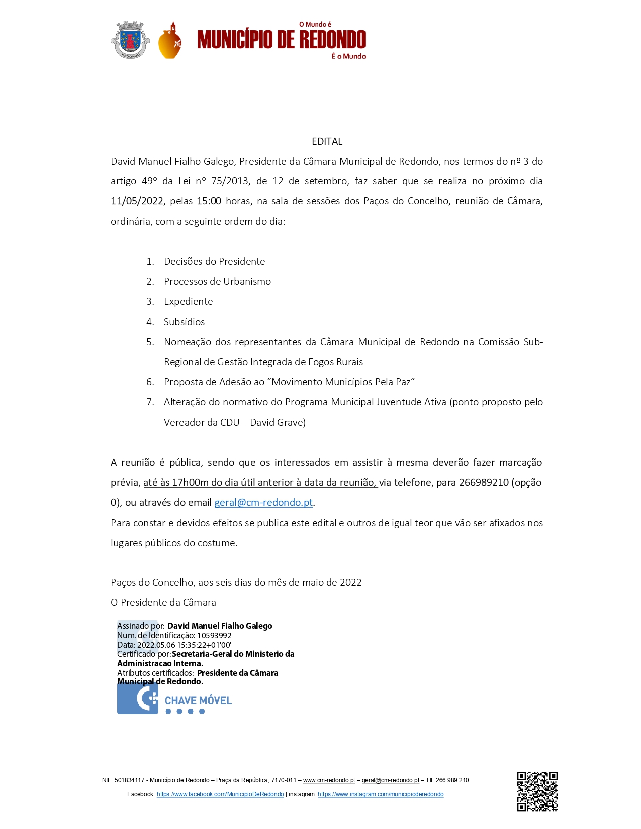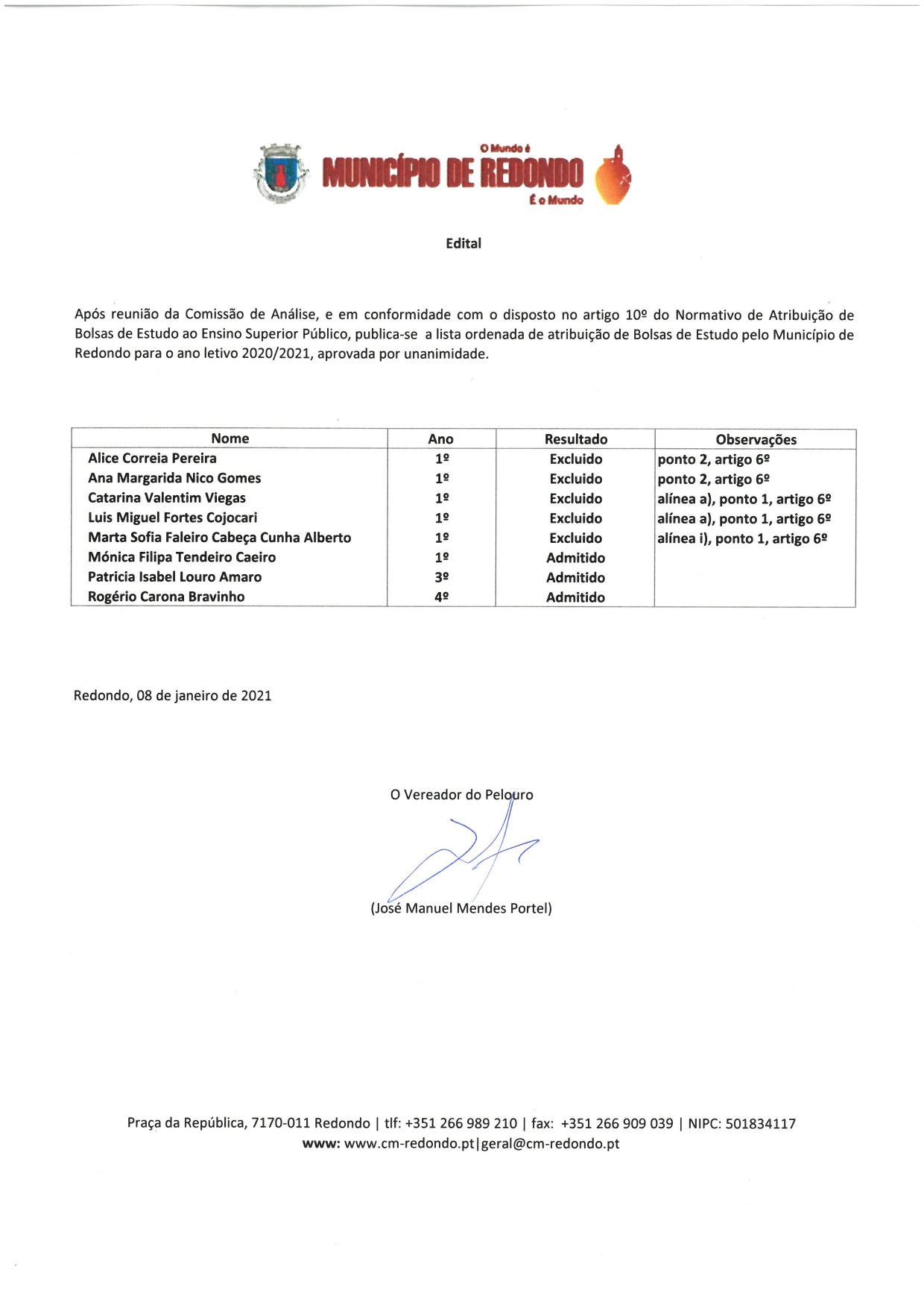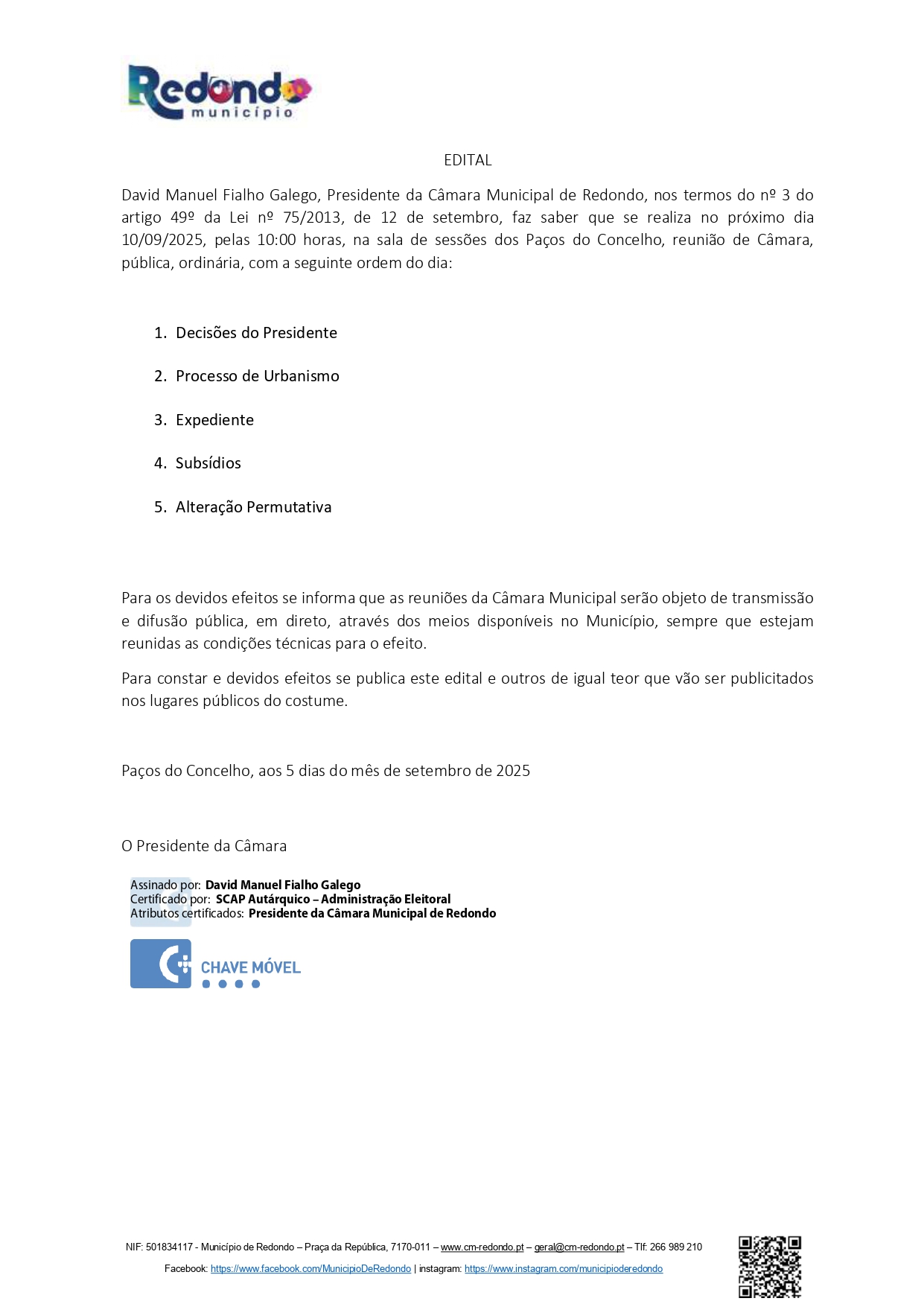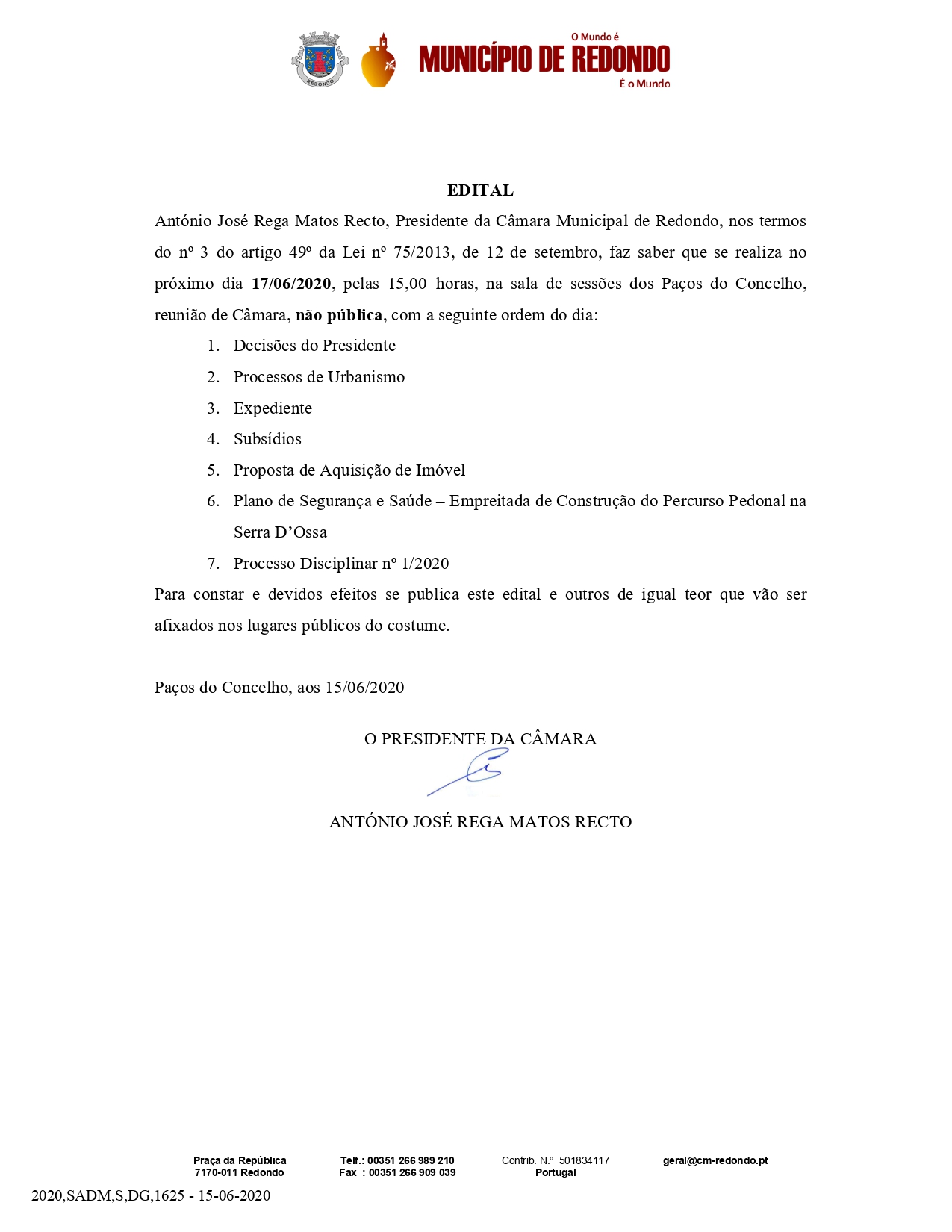 Consulte os Editais e Avisos da Câmara Municipal de Redondo.