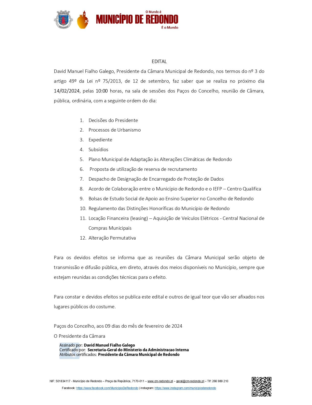 Início > MUNÍCIPE > Câmara Municipal > Editais e Avisos